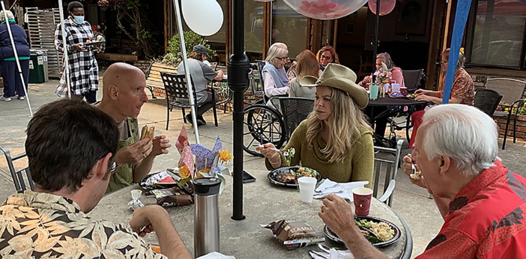 Brian, Mark, Allison, George, staff and patients, all enjoying a great lunch!
